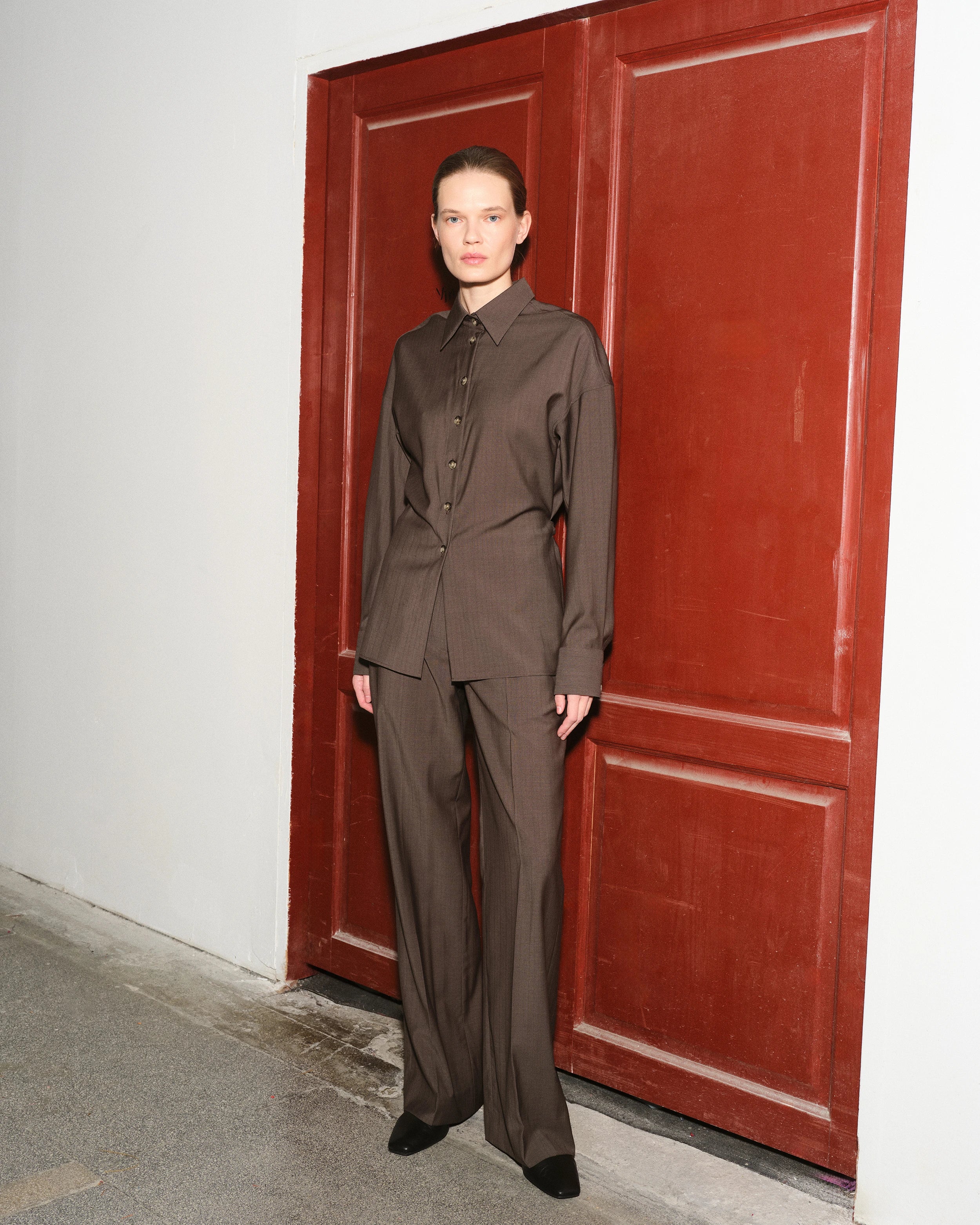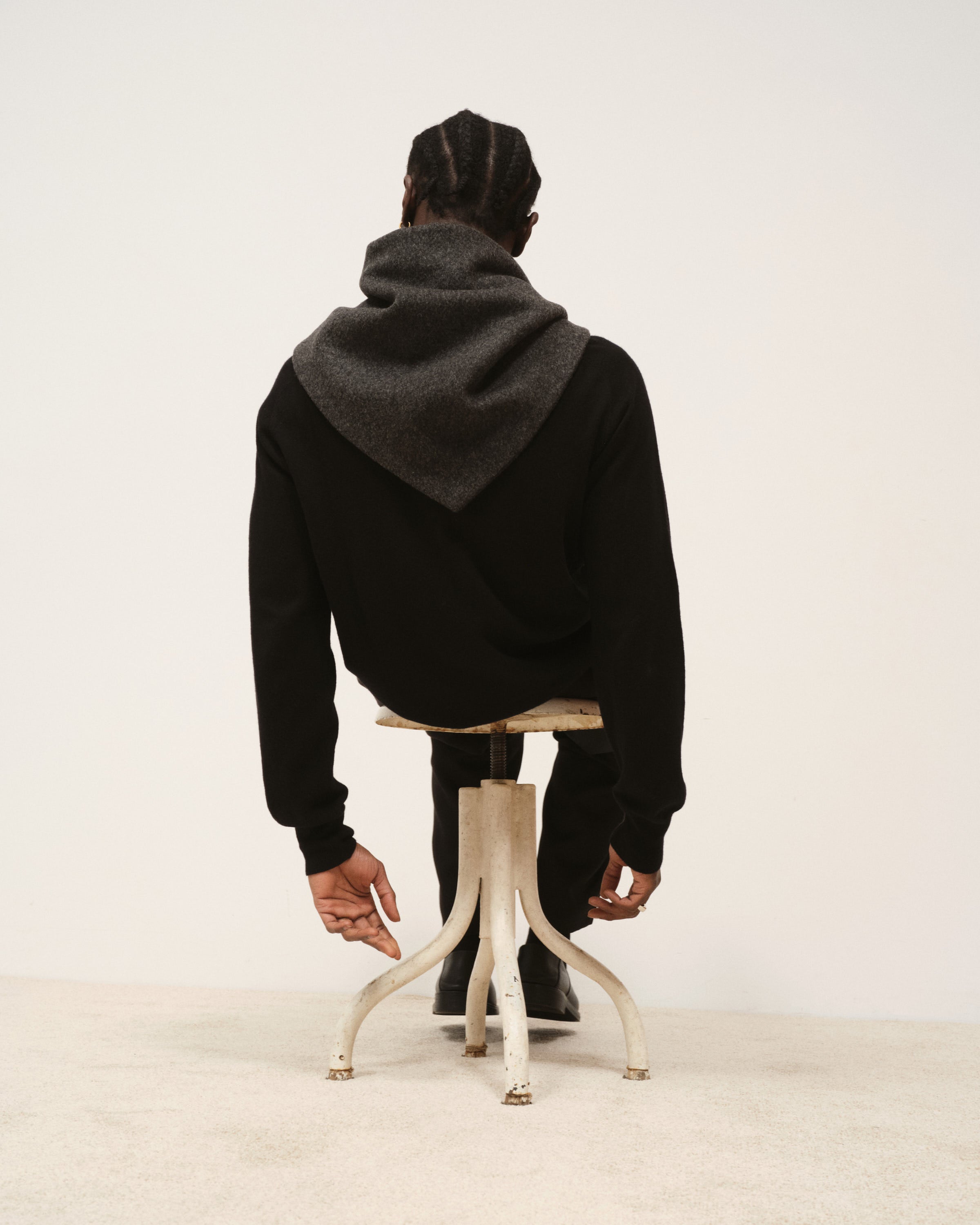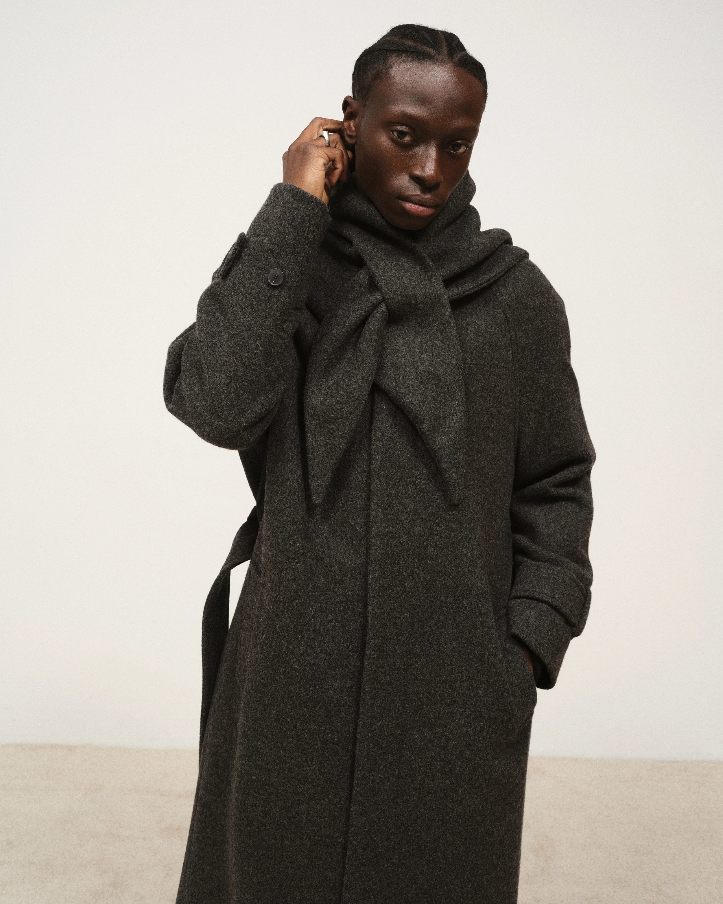 The cuts remain fluid and elegant, the raw and natural materials offer a soft, protective, almost refuge-like feel.