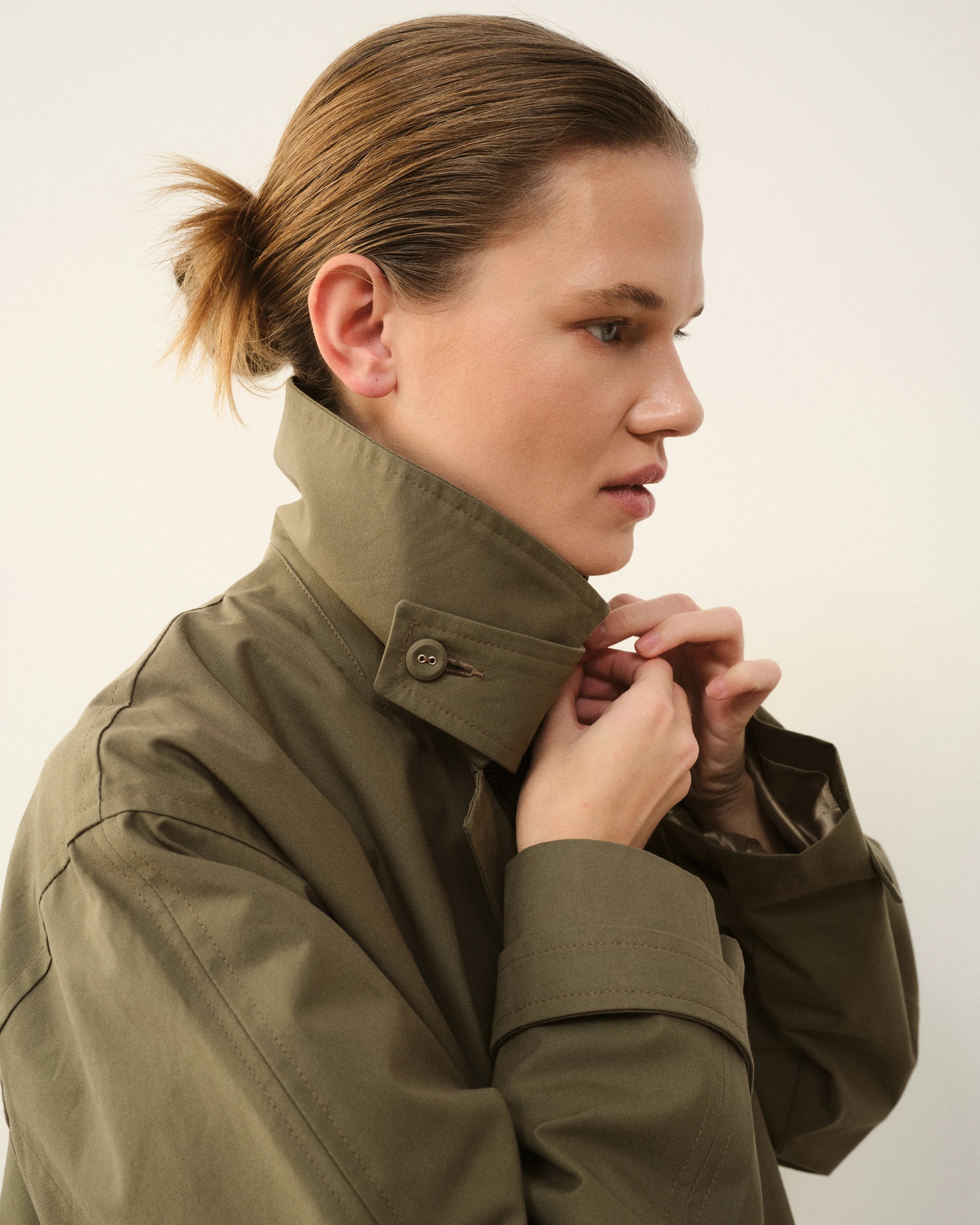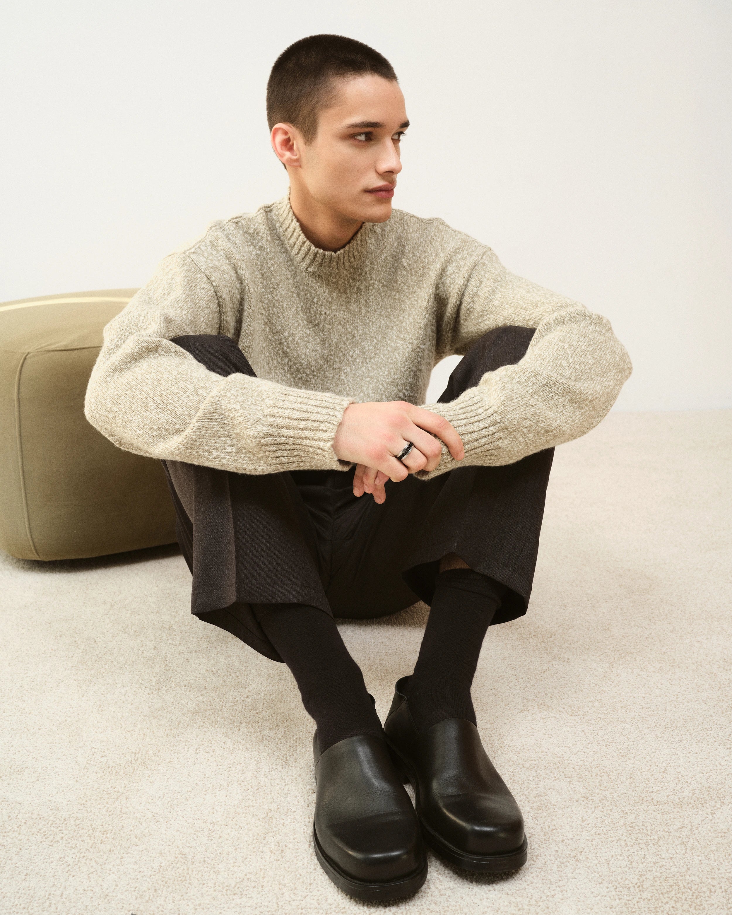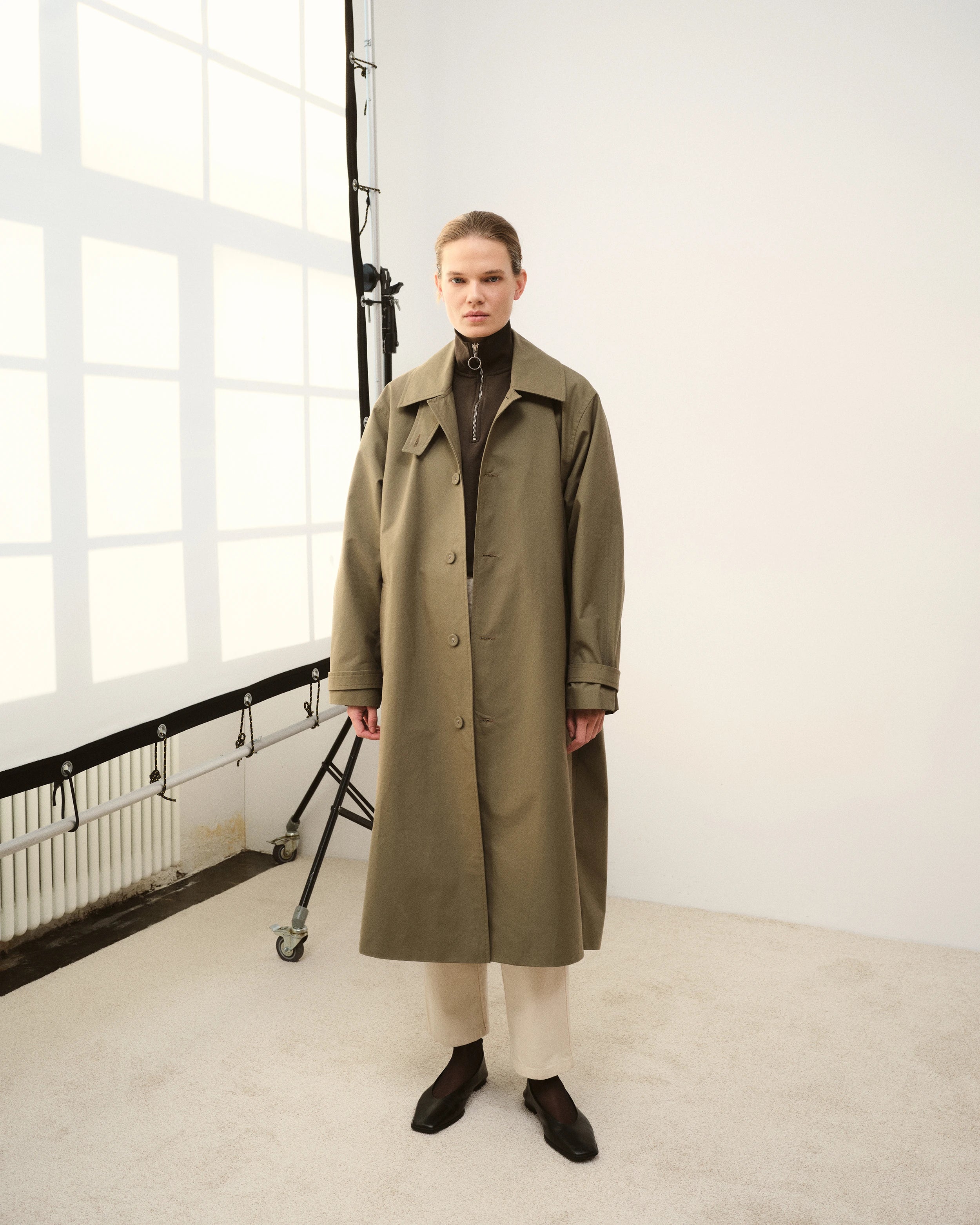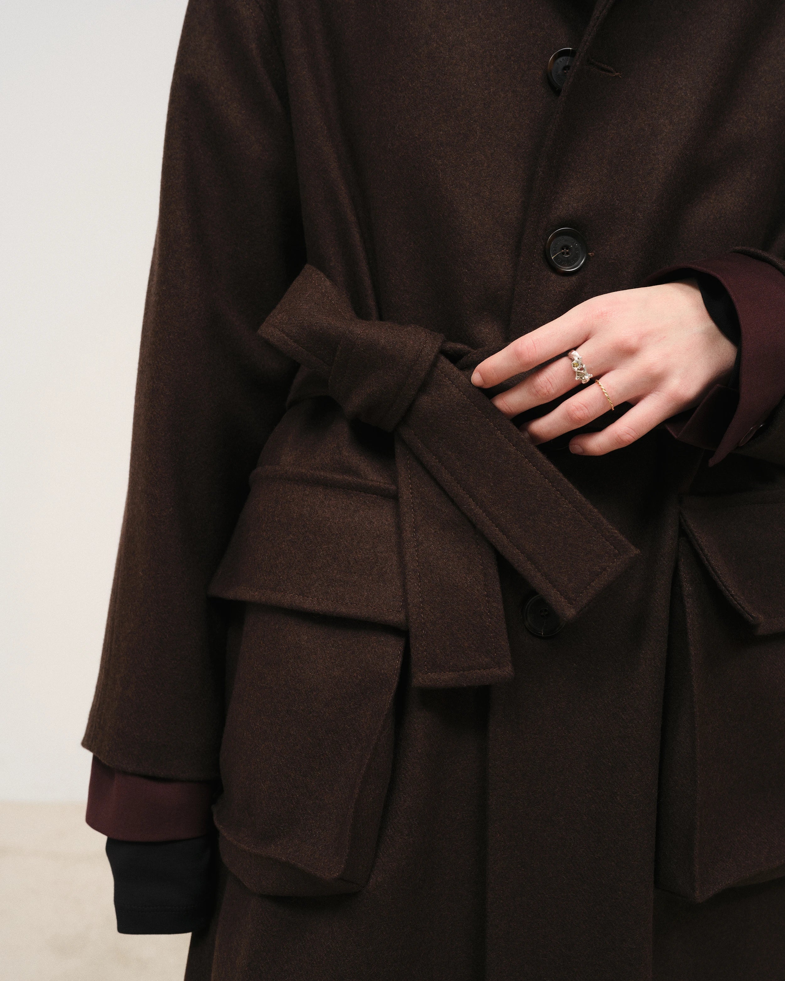 The cuts remain fluid and elegant, the raw and natural materials offer a soft, protective, almost refuge-like feel.
