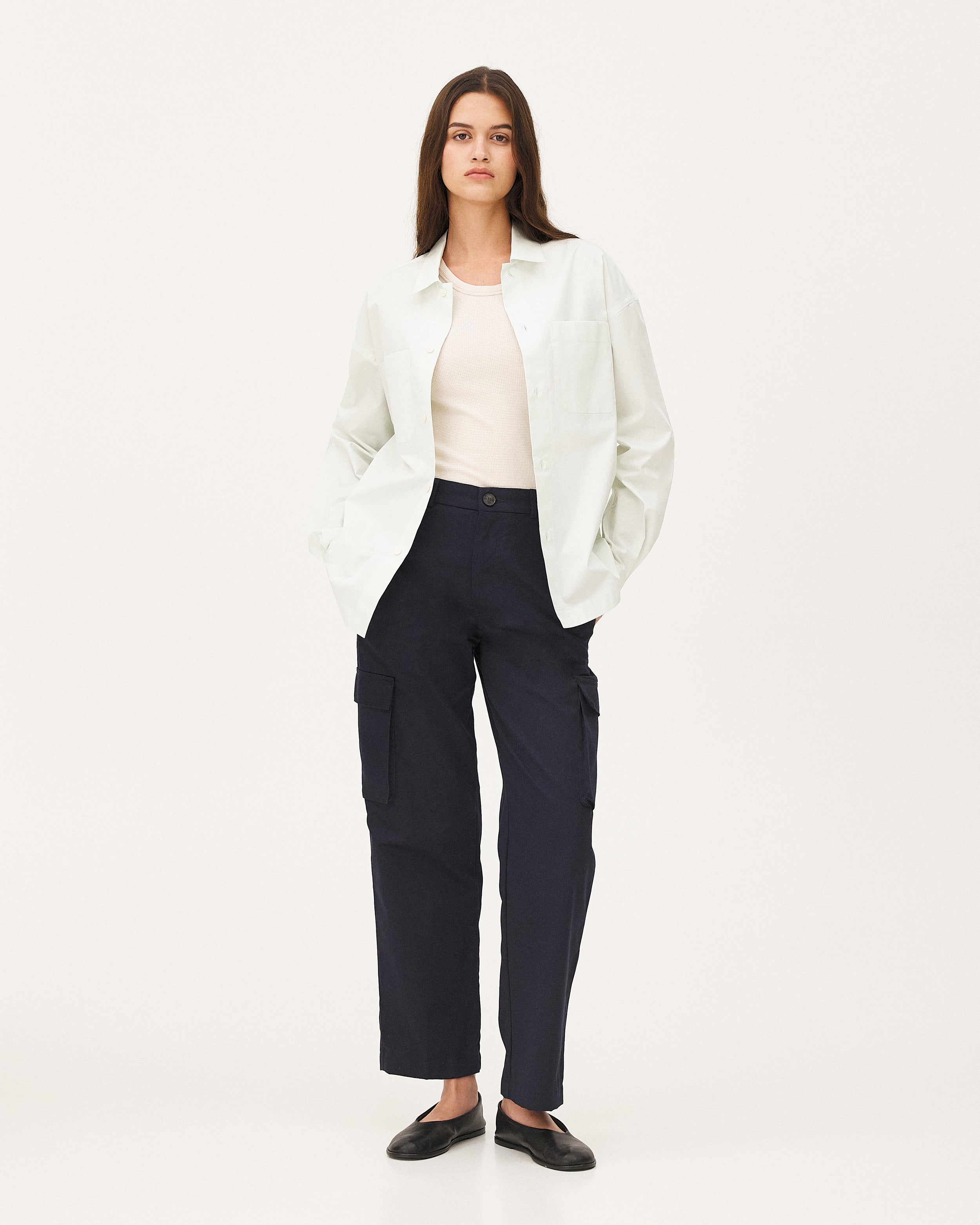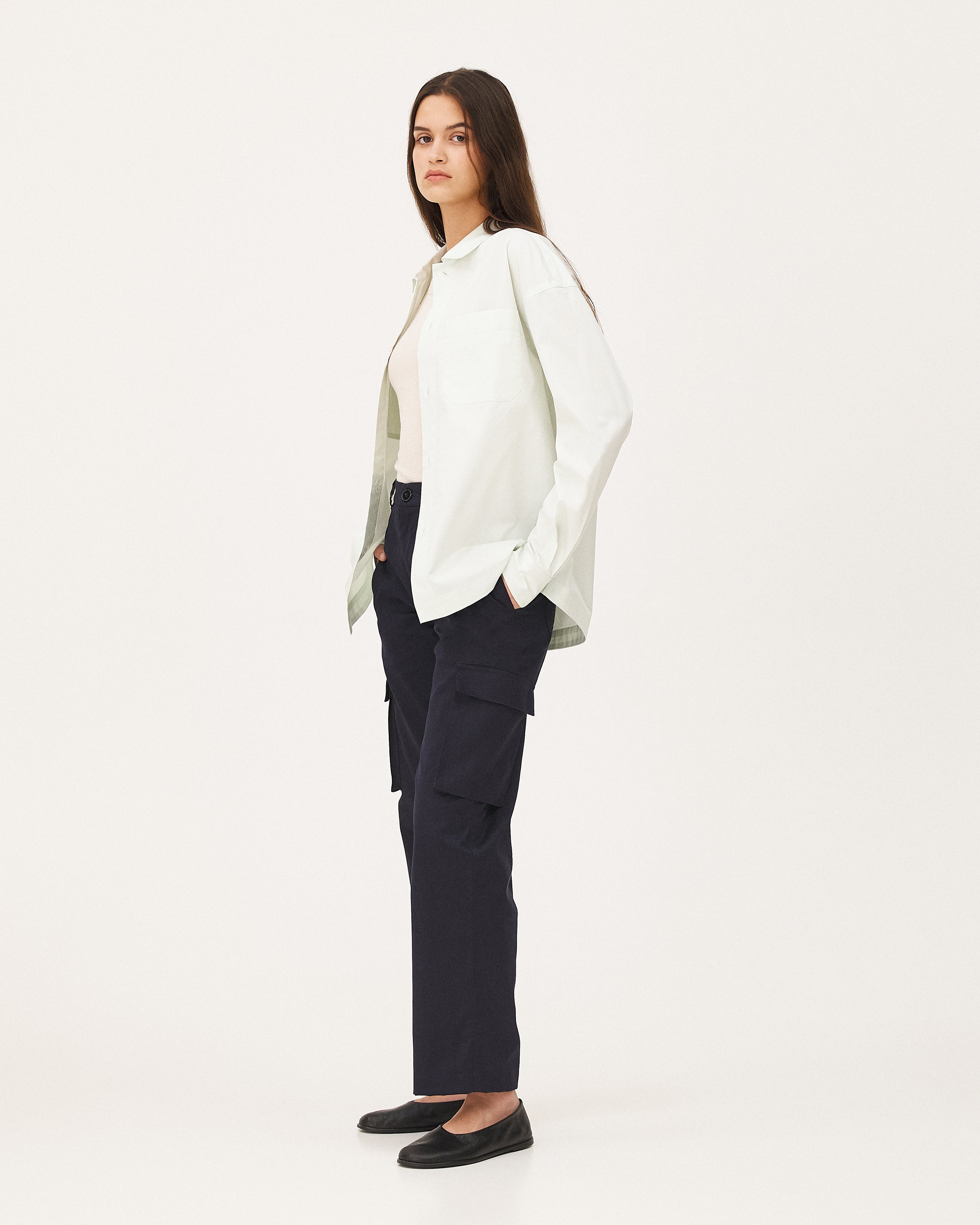 Le reste de nos matières nous vient de nos tisseurs préférés, des grandes maisons d'Italie et du Portugal, principalement. Elles sont naturelles, biologiques ou recyclées. Lin, chanvre, lyocell, laine vierge, coton bio... Elles ont leurs caractéristiques propres et consomment moins de ressources naturelles, émettent moins de CO2, ne nécessitent pas de pesticides, ne relâchent pas de produits chimiques dans l'environnement, sont recyclables et biodégradables. Travailler uniquement des matières à faible impact nous permet de réduire considérablement l'impact environnemental de nos collections.