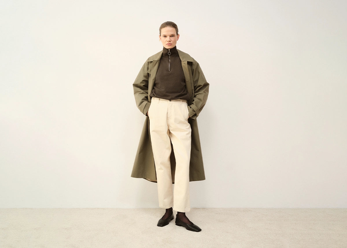 Le reste de nos matières nous vient de nos tisseurs préférés, des grandes maisons d'Italie et du Portugal, principalement. Elles sont naturelles, biologiques ou recyclées. Lin, chanvre, lyocell, laine vierge, coton bio... Elles ont leurs caractéristiques propres et consomment moins de ressources naturelles, émettent moins de CO2, ne nécessitent pas de pesticides, ne relâchent pas de produits chimiques dans l'environnement, sont recyclables et biodégradables. Travailler uniquement des matières à faible impact nous permet de réduire considérablement l'impact environnemental de nos collections.