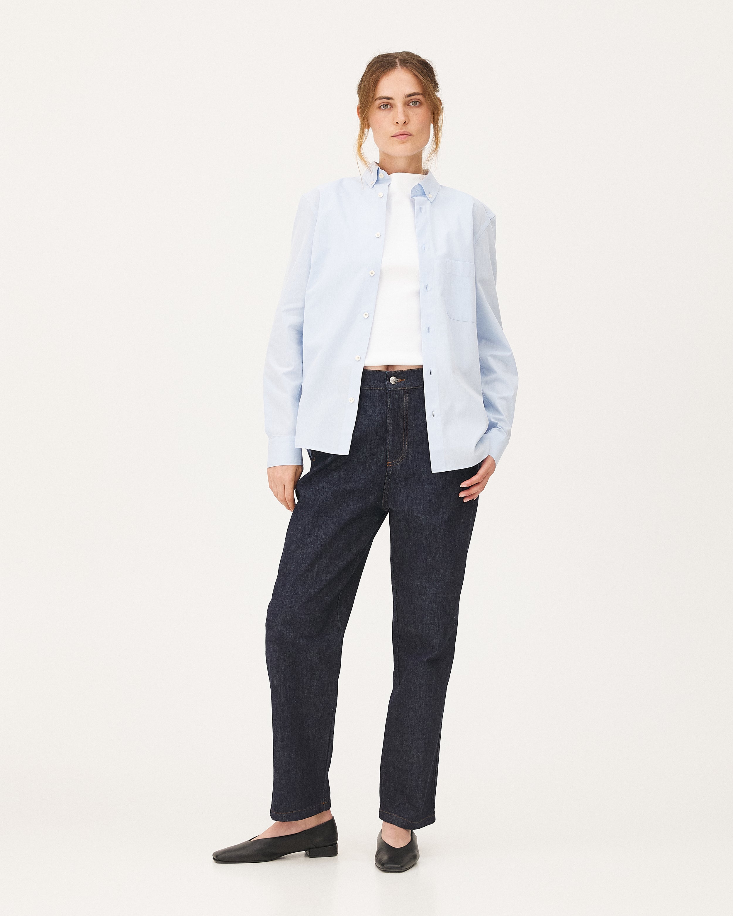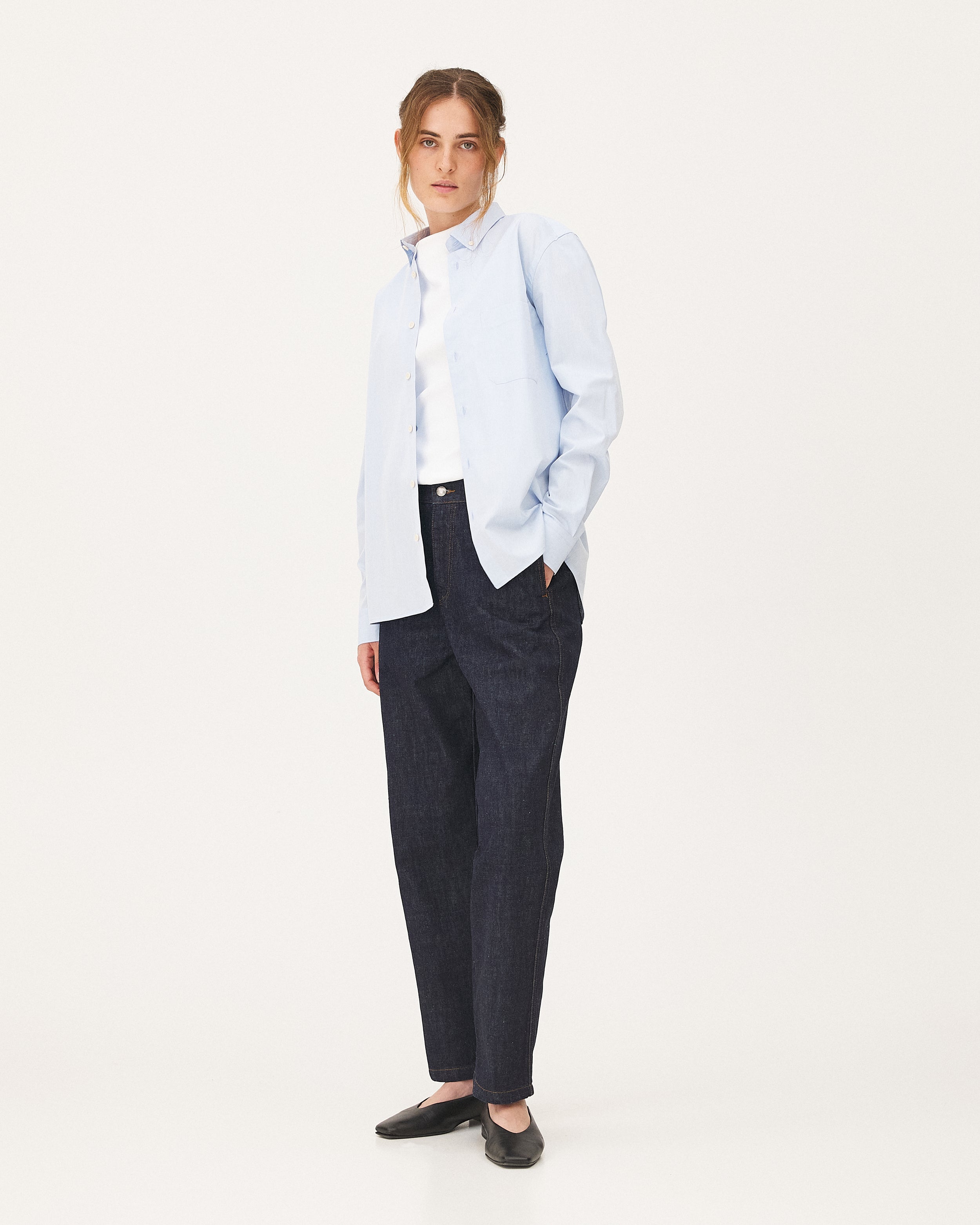 Le reste de nos matières nous vient de nos tisseurs préférés, des grandes maisons d'Italie et du Portugal, principalement. Elles sont naturelles, biologiques ou recyclées. Lin, chanvre, lyocell, laine vierge, coton bio... Elles ont leurs caractéristiques propres et consomment moins de ressources naturelles, émettent moins de CO2, ne nécessitent pas de pesticides, ne relâchent pas de produits chimiques dans l'environnement, sont recyclables et biodégradables. Travailler uniquement des matières à faible impact nous permet de réduire considérablement l'impact environnemental de nos collections.