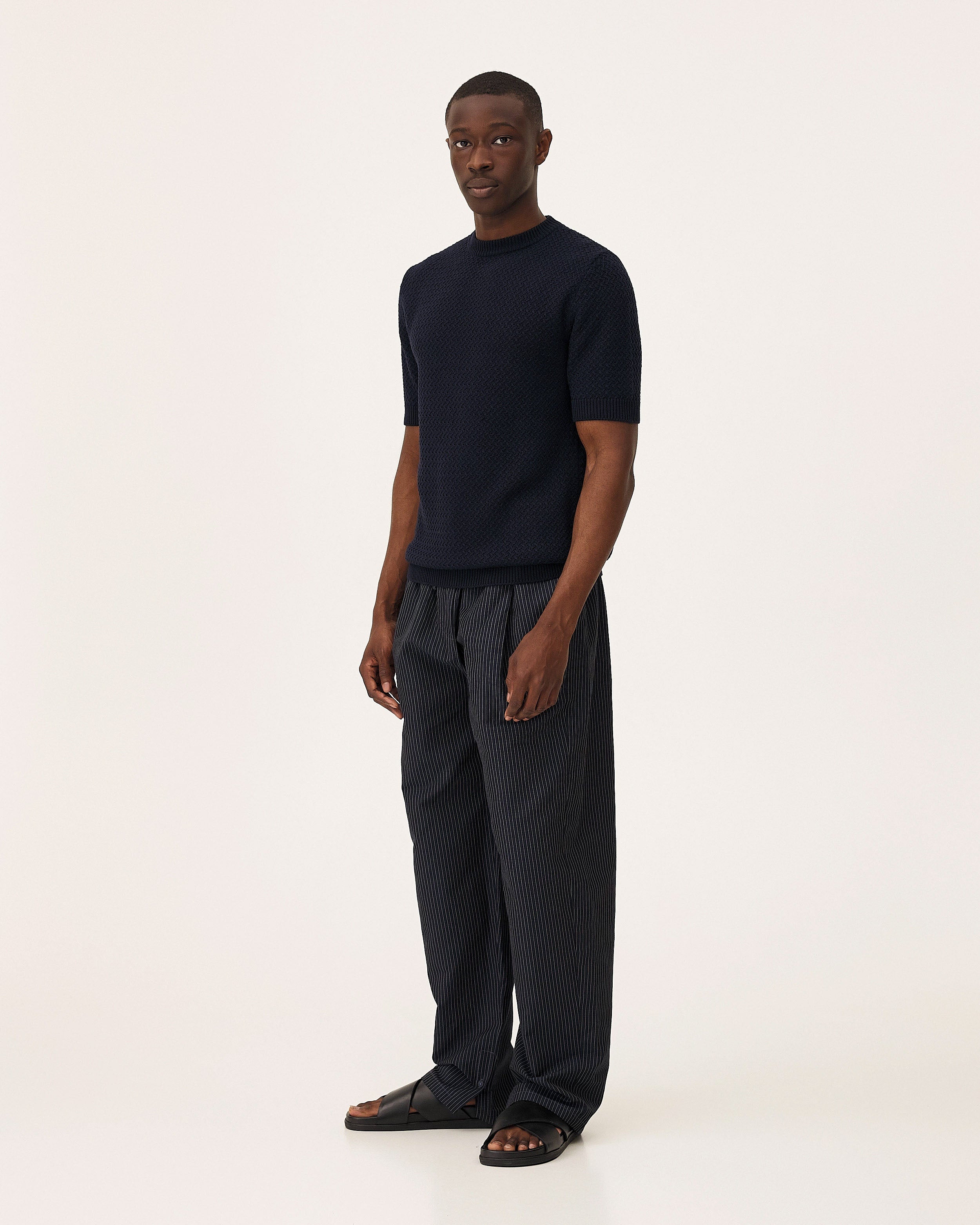 Le reste de nos matières nous vient de nos tisseurs préférés, des grandes maisons d'Italie et du Portugal, principalement. Elles sont naturelles, biologiques ou recyclées. Lin, chanvre, lyocell, laine vierge, coton bio... Elles ont leurs caractéristiques propres et consomment moins de ressources naturelles, émettent moins de CO2, ne nécessitent pas de pesticides, ne relâchent pas de produits chimiques dans l'environnement, sont recyclables et biodégradables. Travailler uniquement des matières à faible impact nous permet de réduire considérablement l'impact environnemental de nos collections.